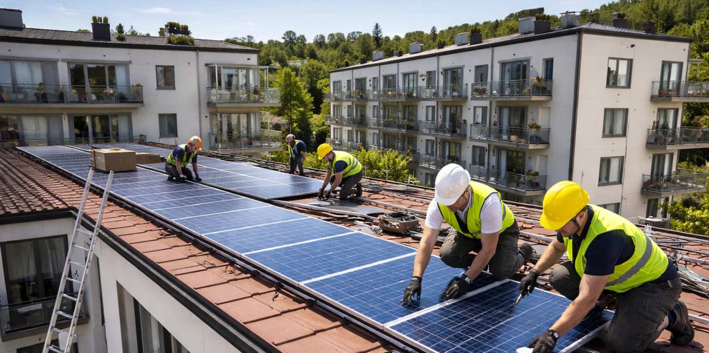 - Solceller: Solceller omvandlar solljus direkt till elektricitet. De kan installeras på tak eller i fält och producera el som antingen används på plats eller matas in i det allmänna elnätet.